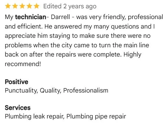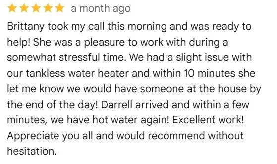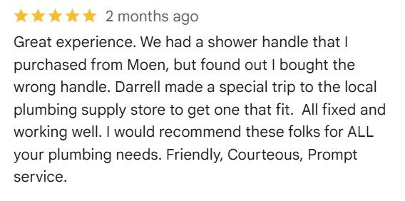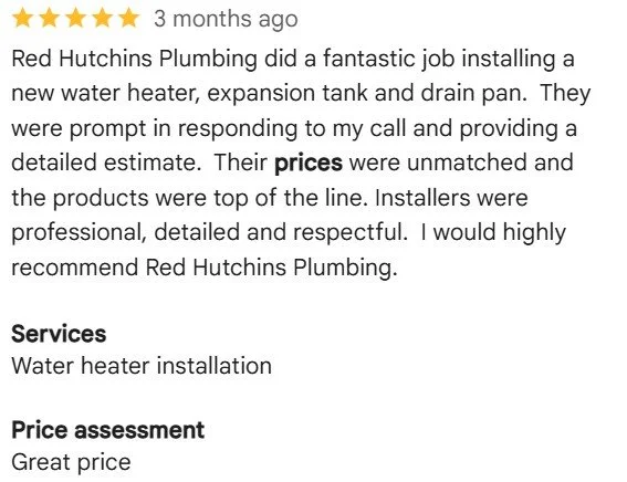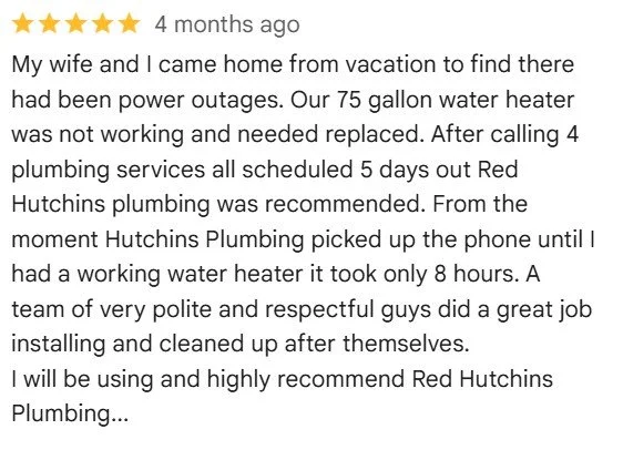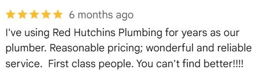 At Red Hutchins Plumbing, we are proud of our team’s professionalism and customer service. Customer satisfaction is our top priority - and our Google ratings show it!